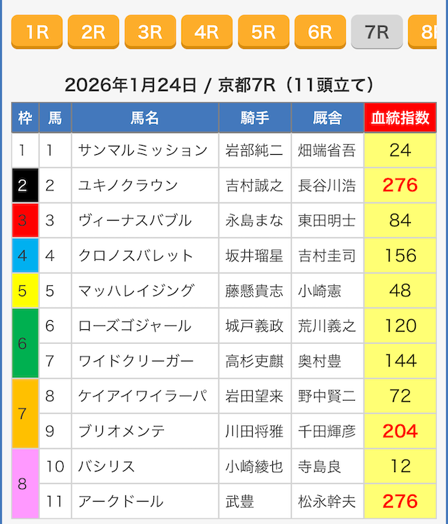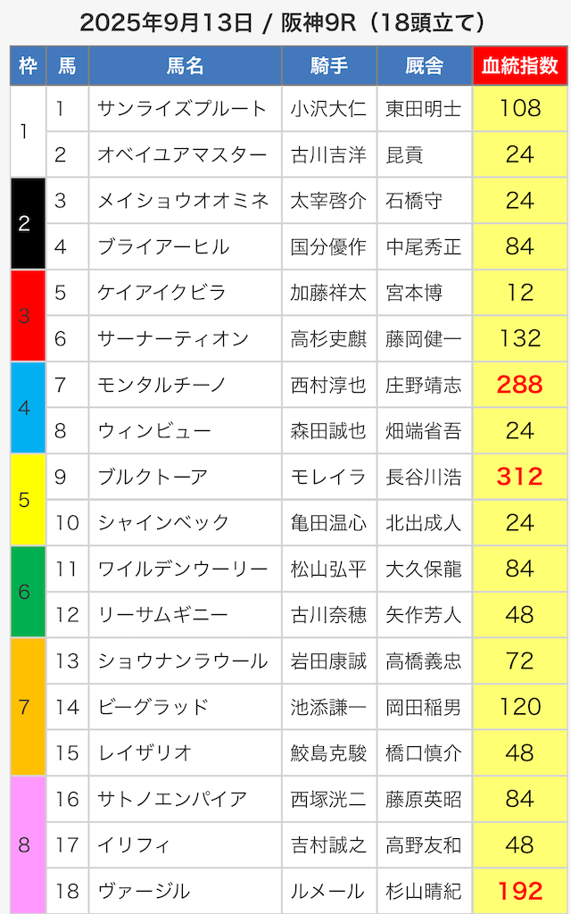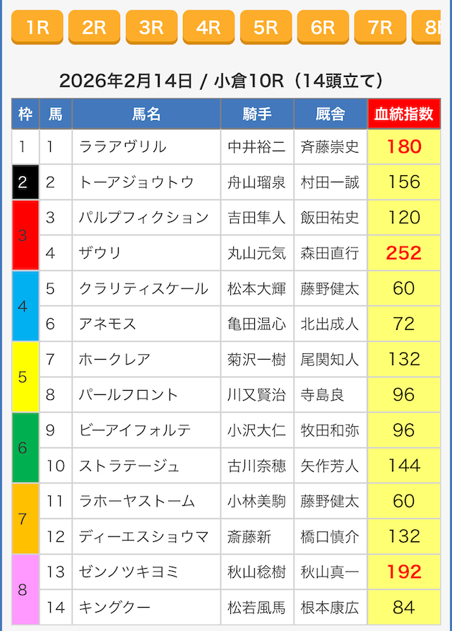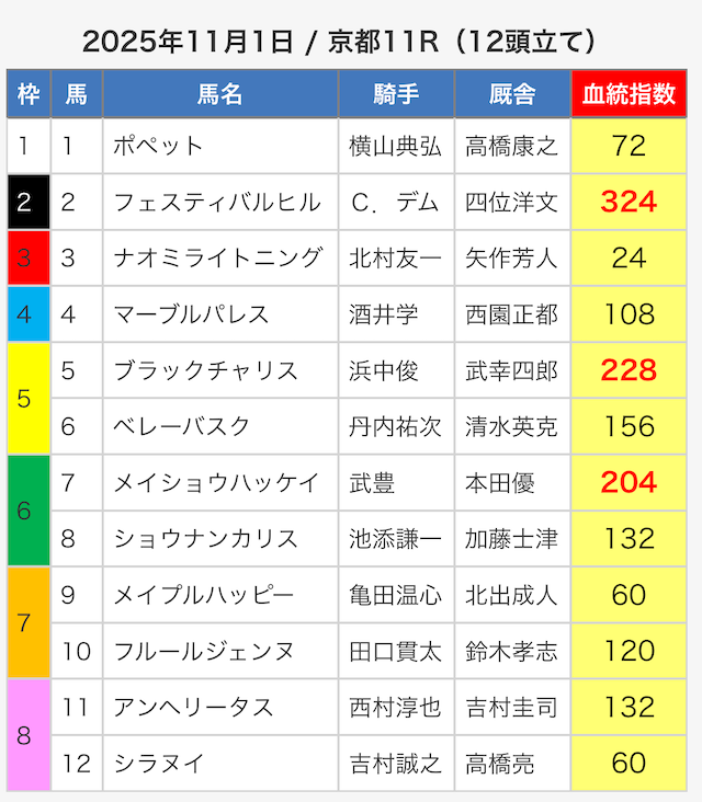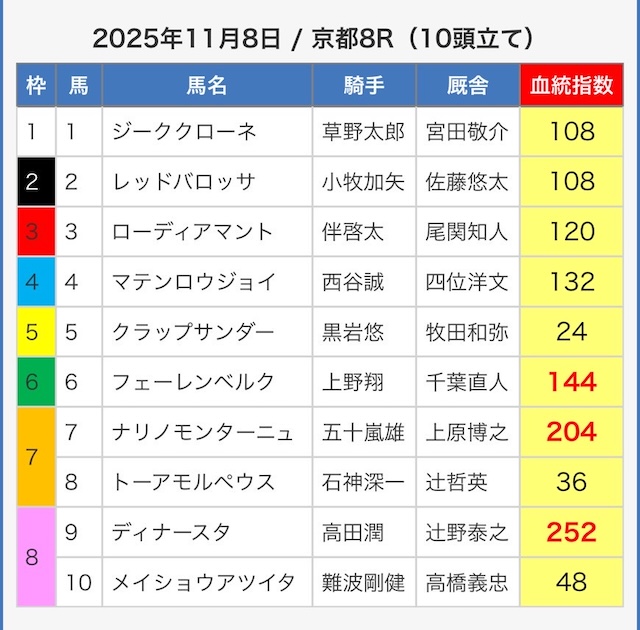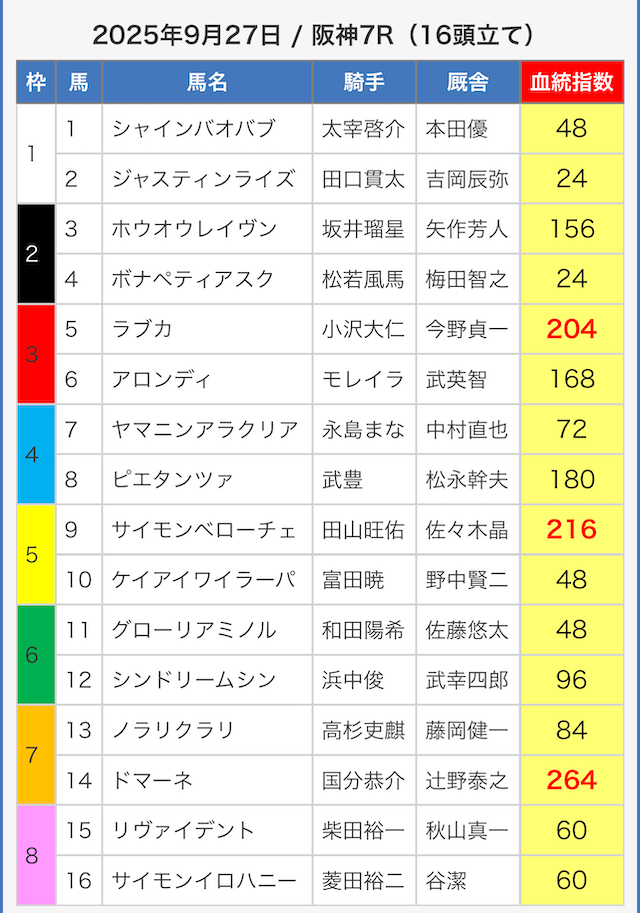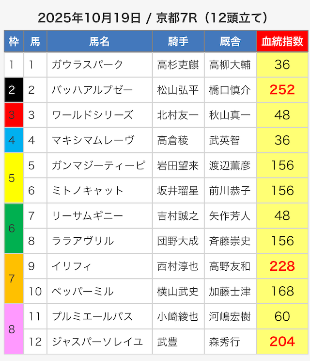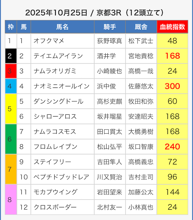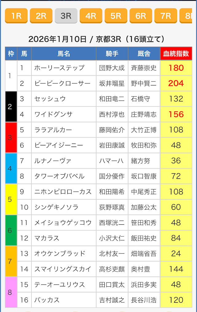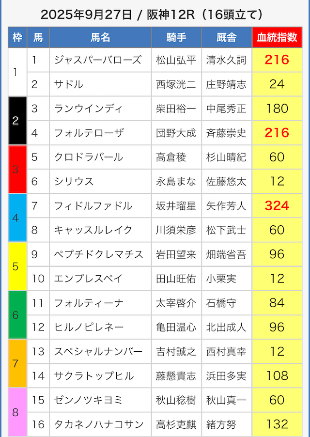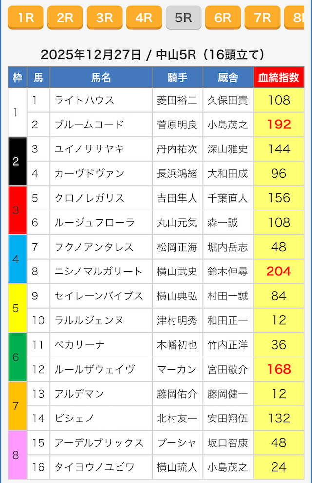 えーあいNEOが公開するのは、そのレースに出走する馬全頭分の能力指数。