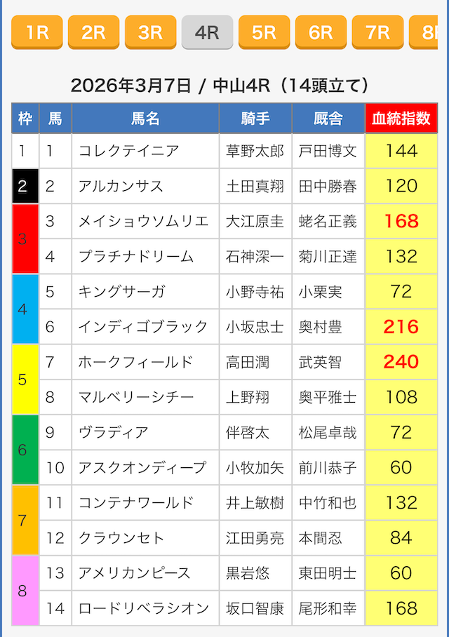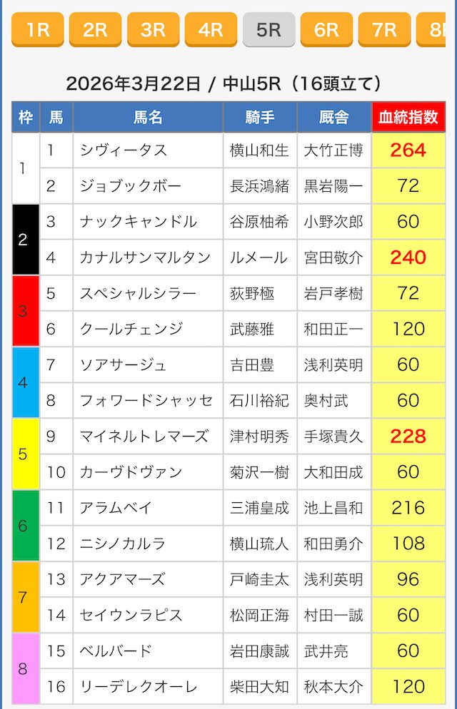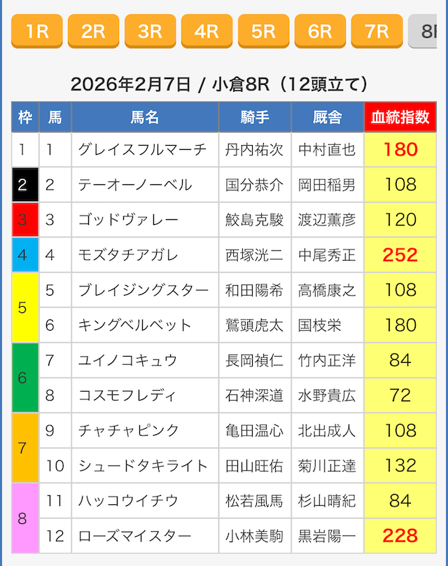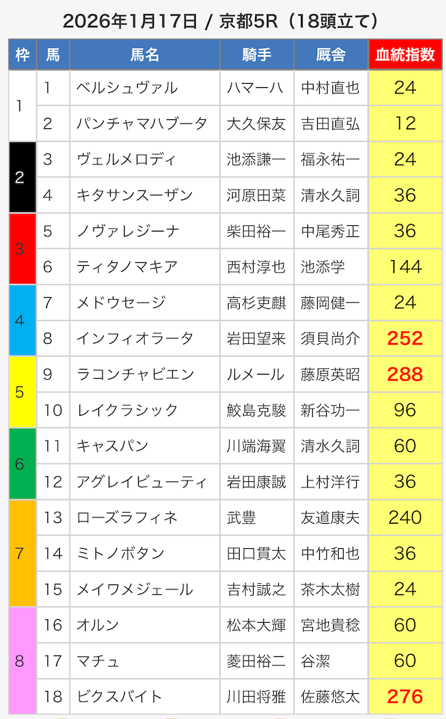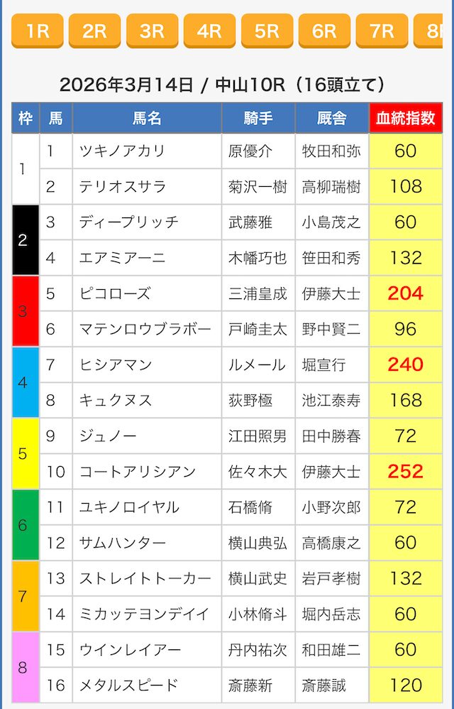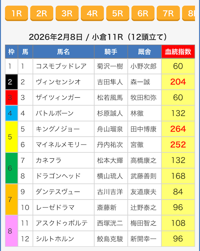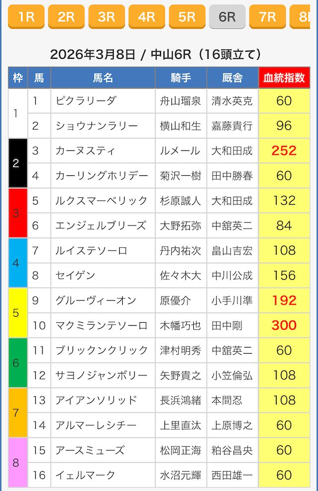 ※指数が同じ値の馬がいたので6頭選出