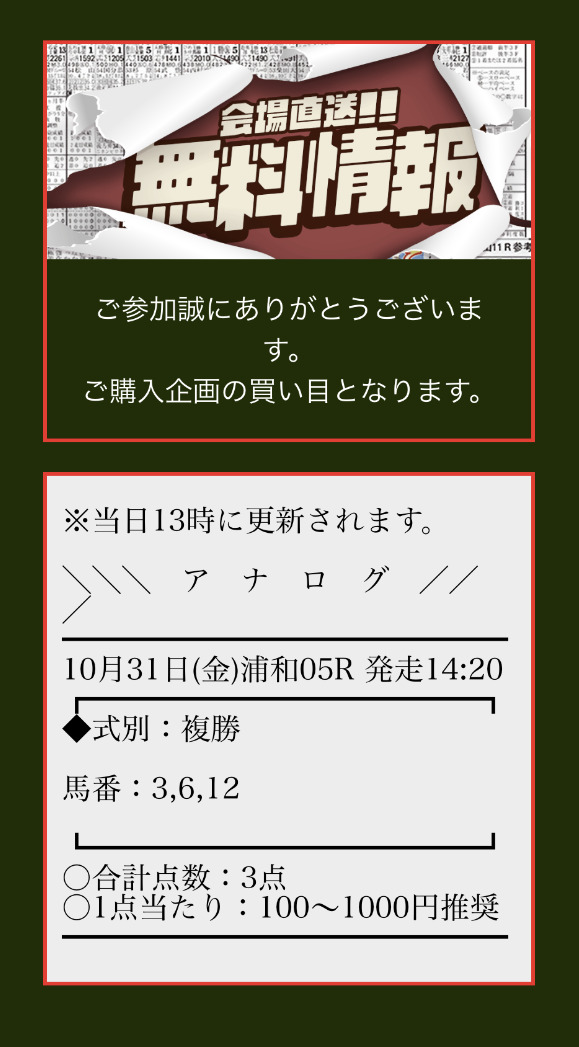 アナログの無料予想で勝負!【1回目】