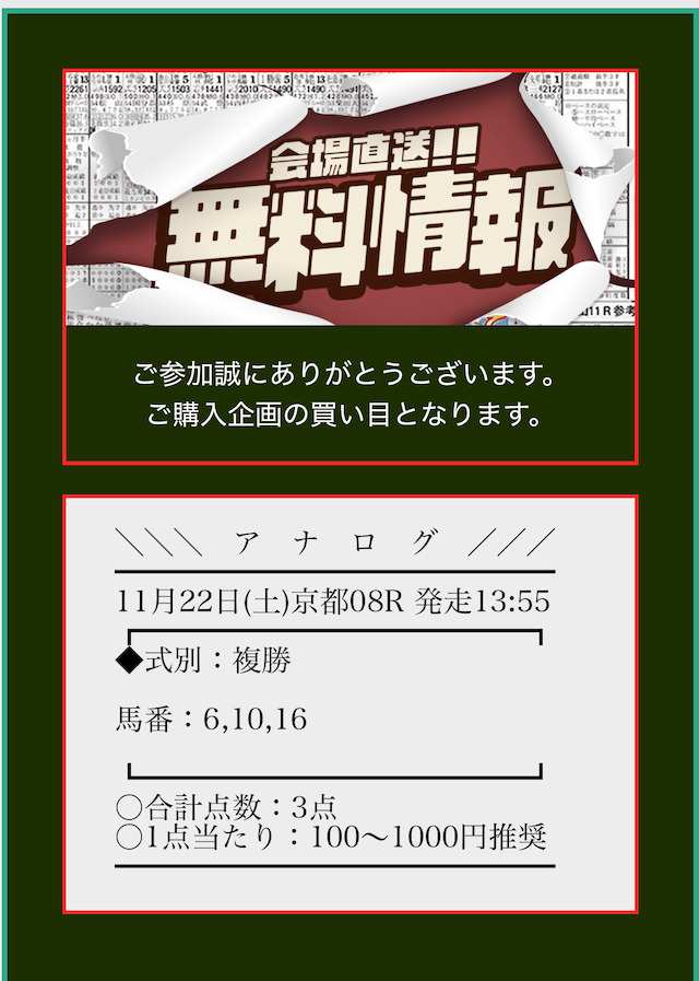 今回検証するのは『アナログ』という競馬予想サイトです。