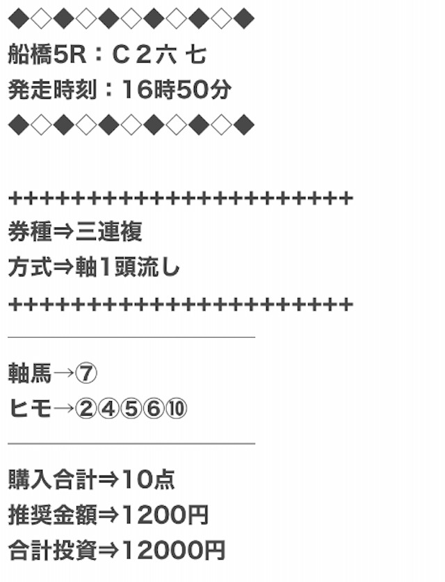 - 提供数:毎日公開(1日1レース)
