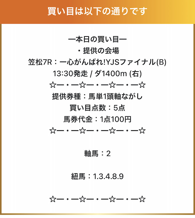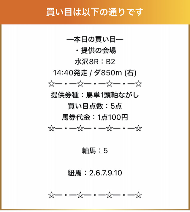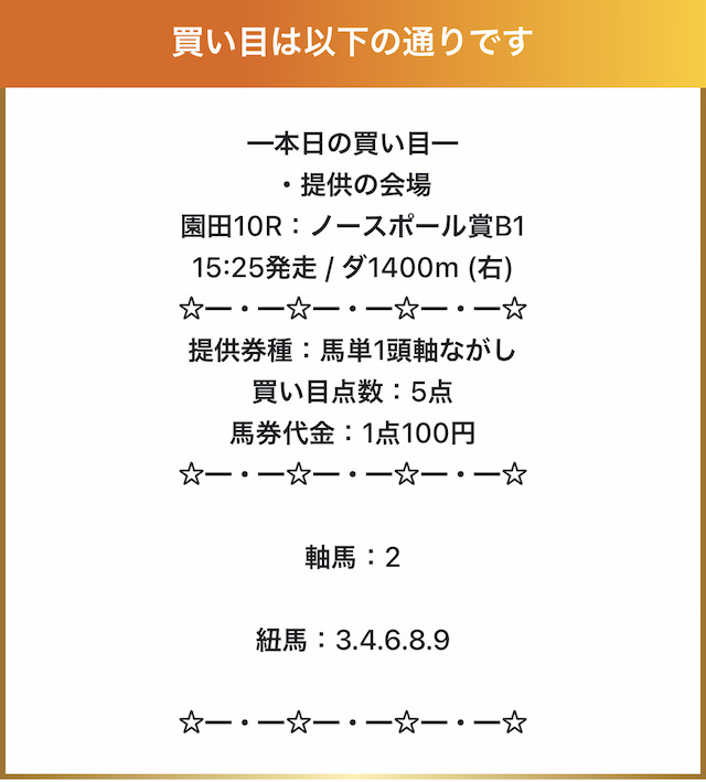 実際に公開された買い目がこちらです。