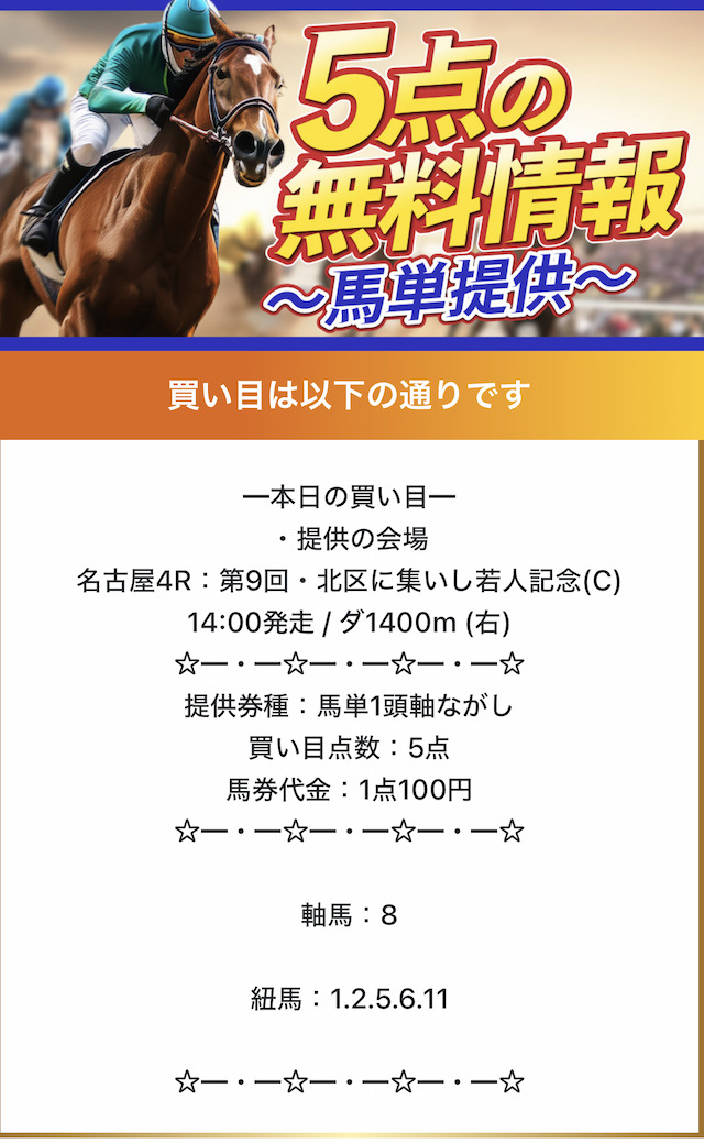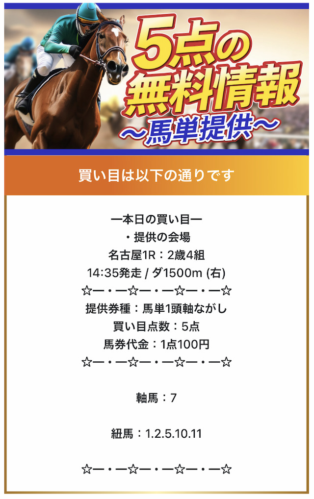 公式サイトには「1日最大6レースの予想を提供する」と記載がされています。