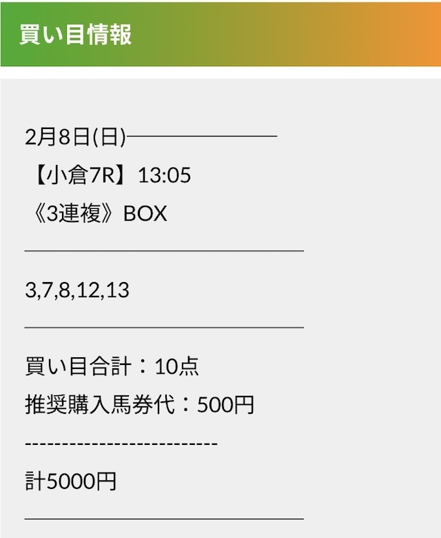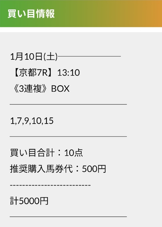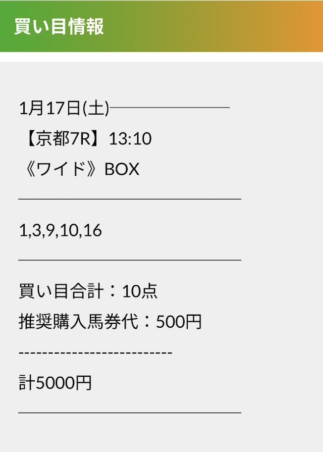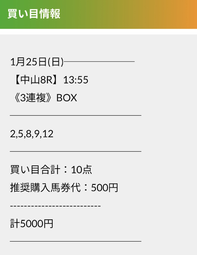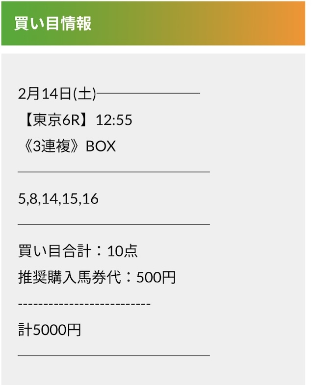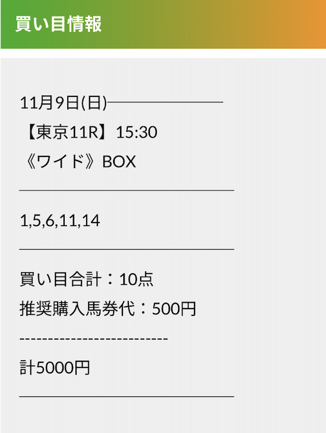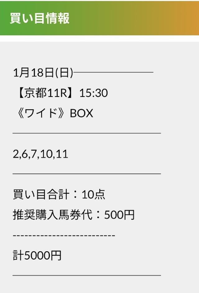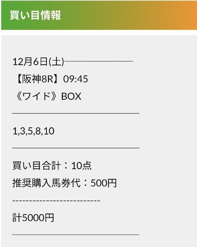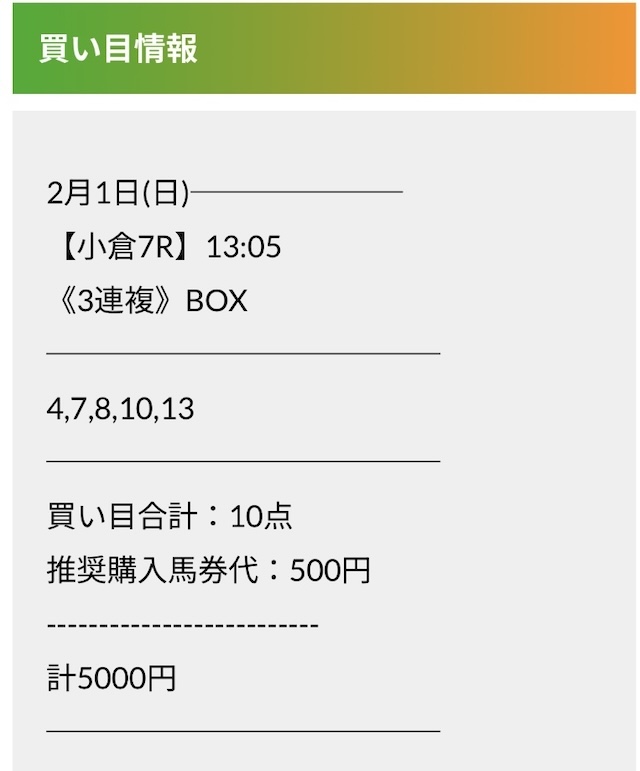 実際に公開された買い目がこちらです。
