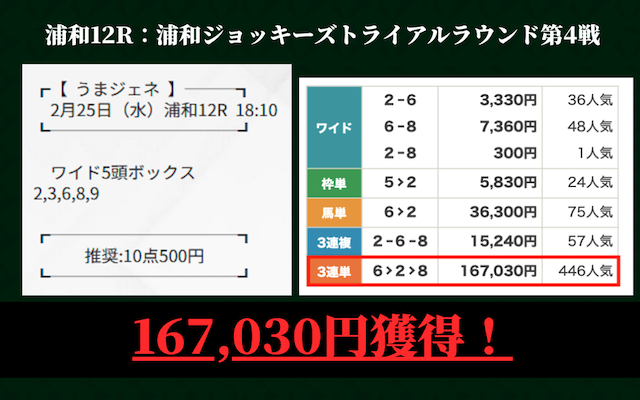 | 混合派 | ワイド・馬連 | ワイド400円+馬連600円 |