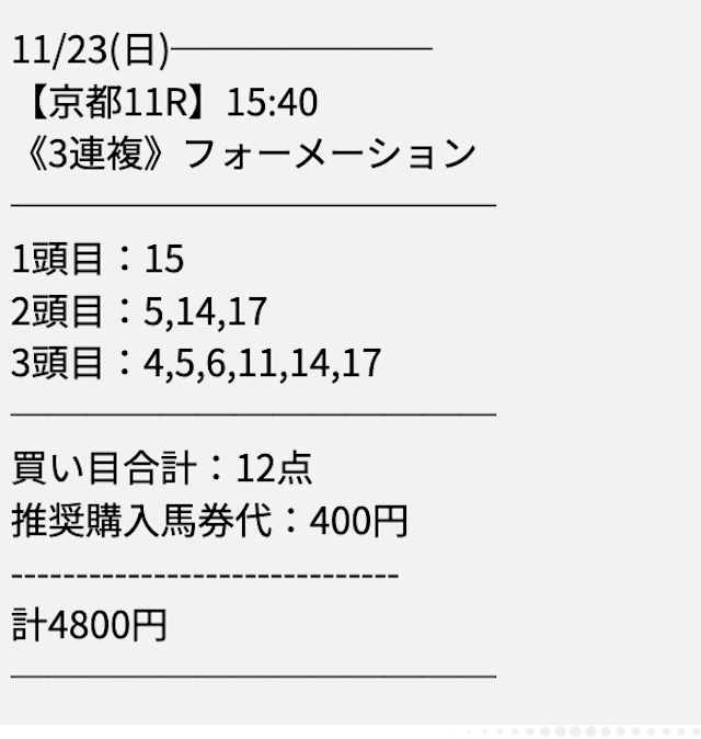 情報料金は10万円と確かに高額ですが、7万馬券が当たるならむしろ安いぐらい!