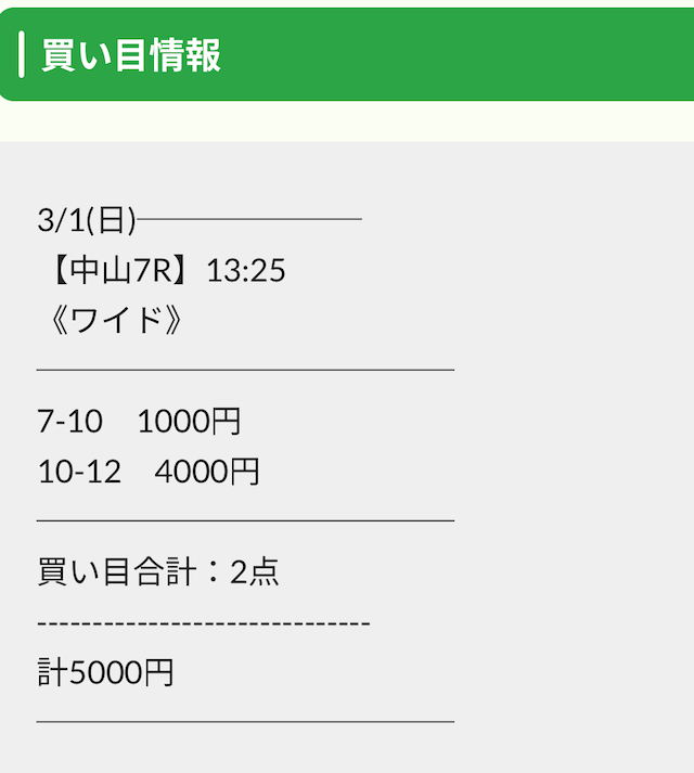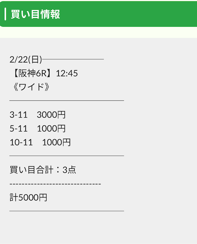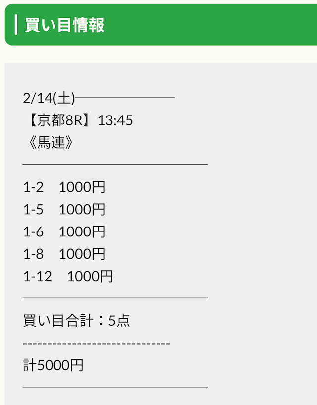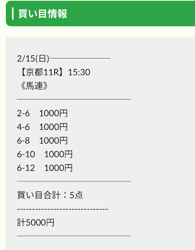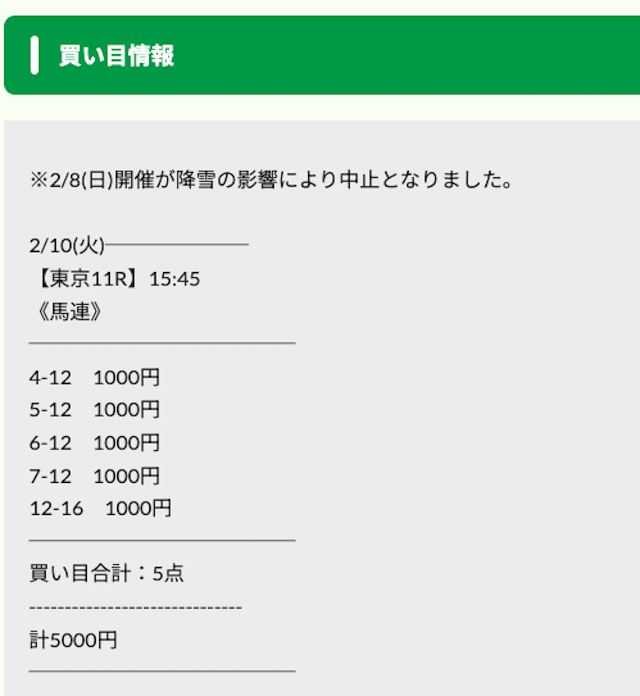 実際に公開された買い目がこちらです。