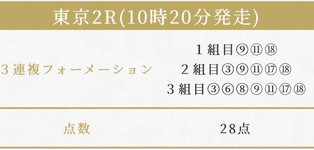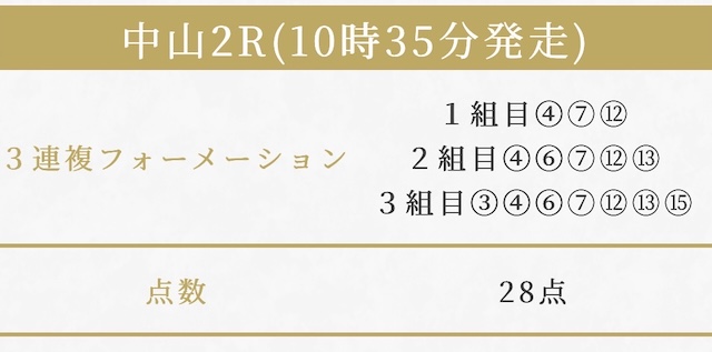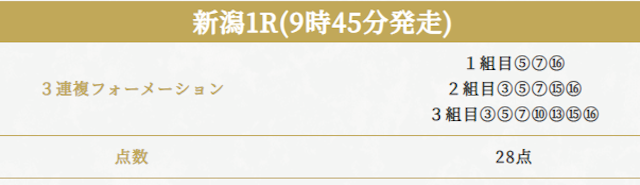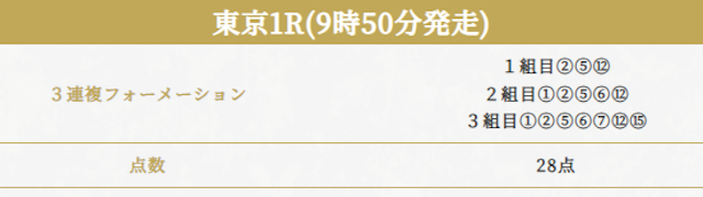 実際に公開された買い目がこちらです。