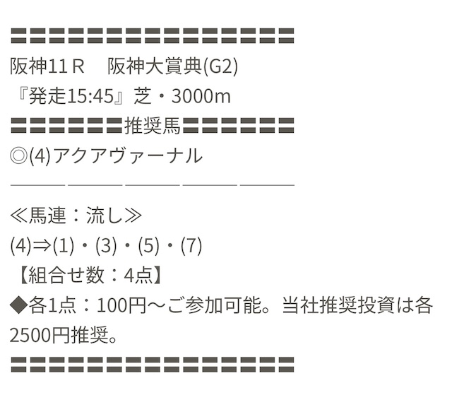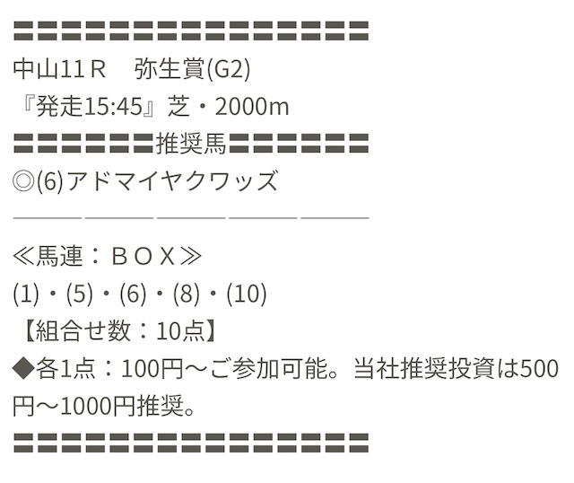 実際に公開された買い目がこちらです。