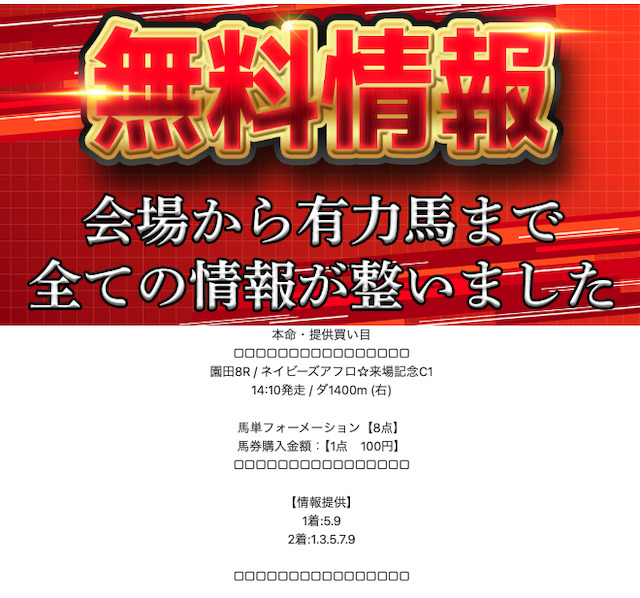 無料予想が4、5回当たれば軍資金は貯まるので、余裕ができた方はぜひ一発狙ってみてください!