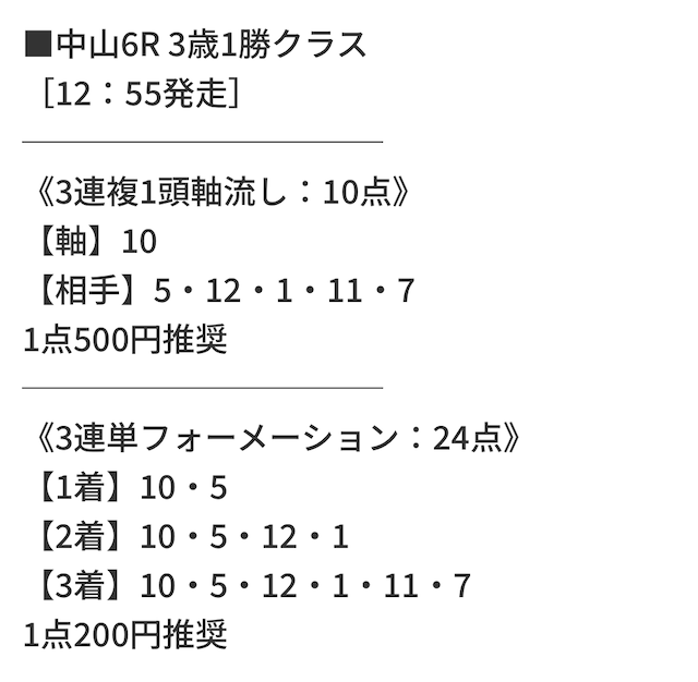 | ⑥サンマルノヴェル | 2番人気 | 3.5倍 |