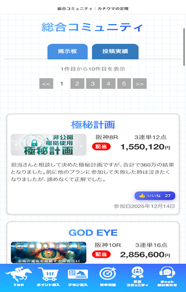 無料予想、有料予想共にクオリティが高く、登録後すぐに稼ぐことに成功!