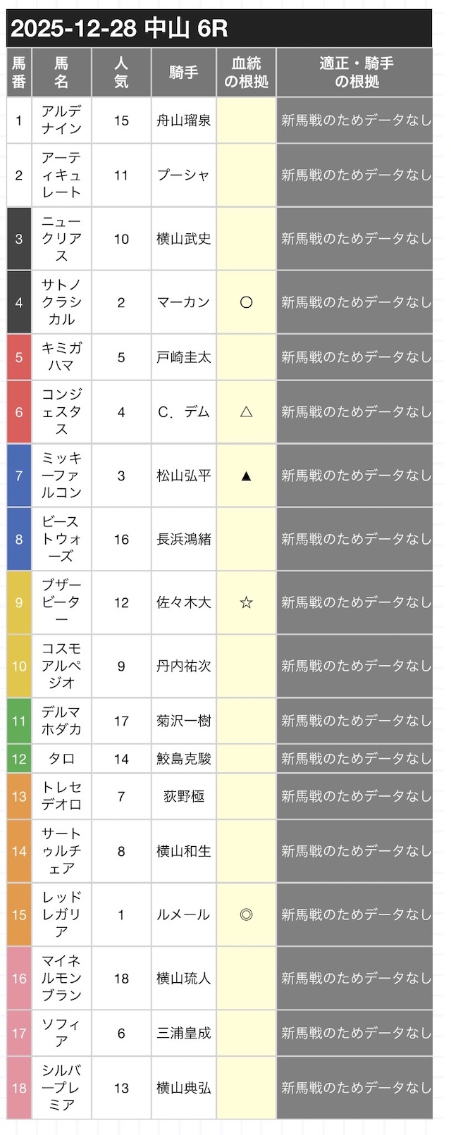 | 2025/12/6 中京3R:的中 |