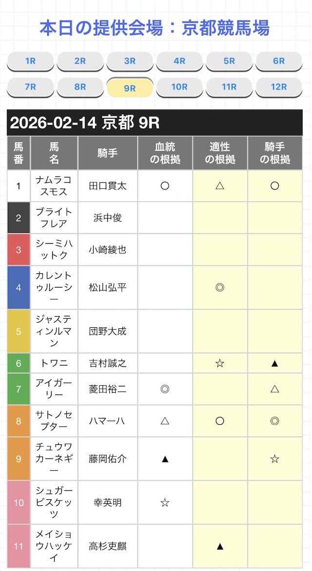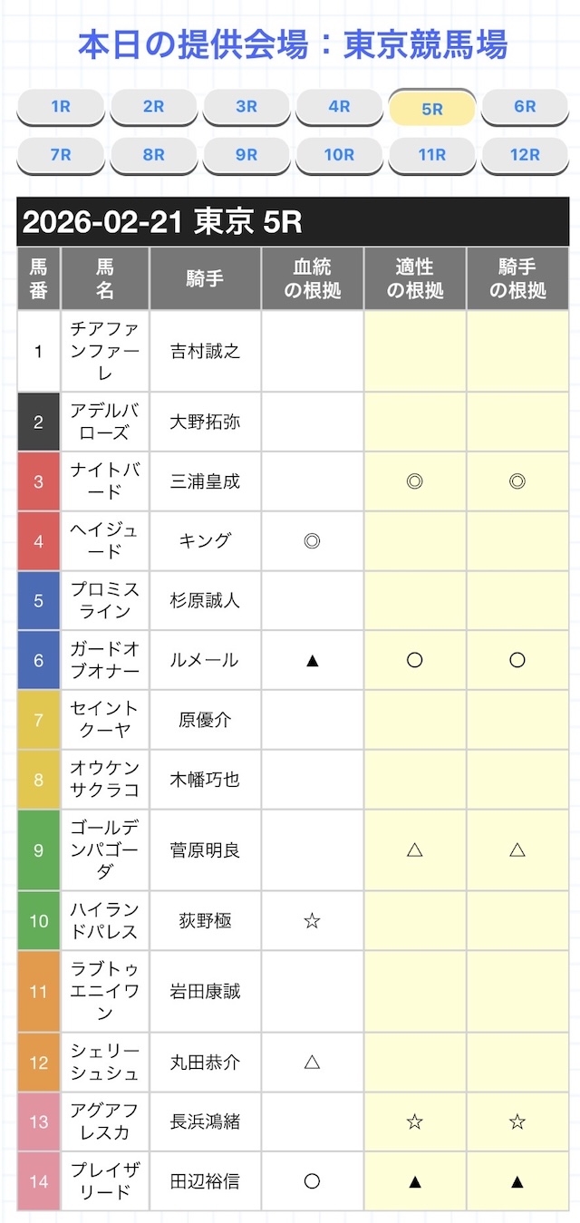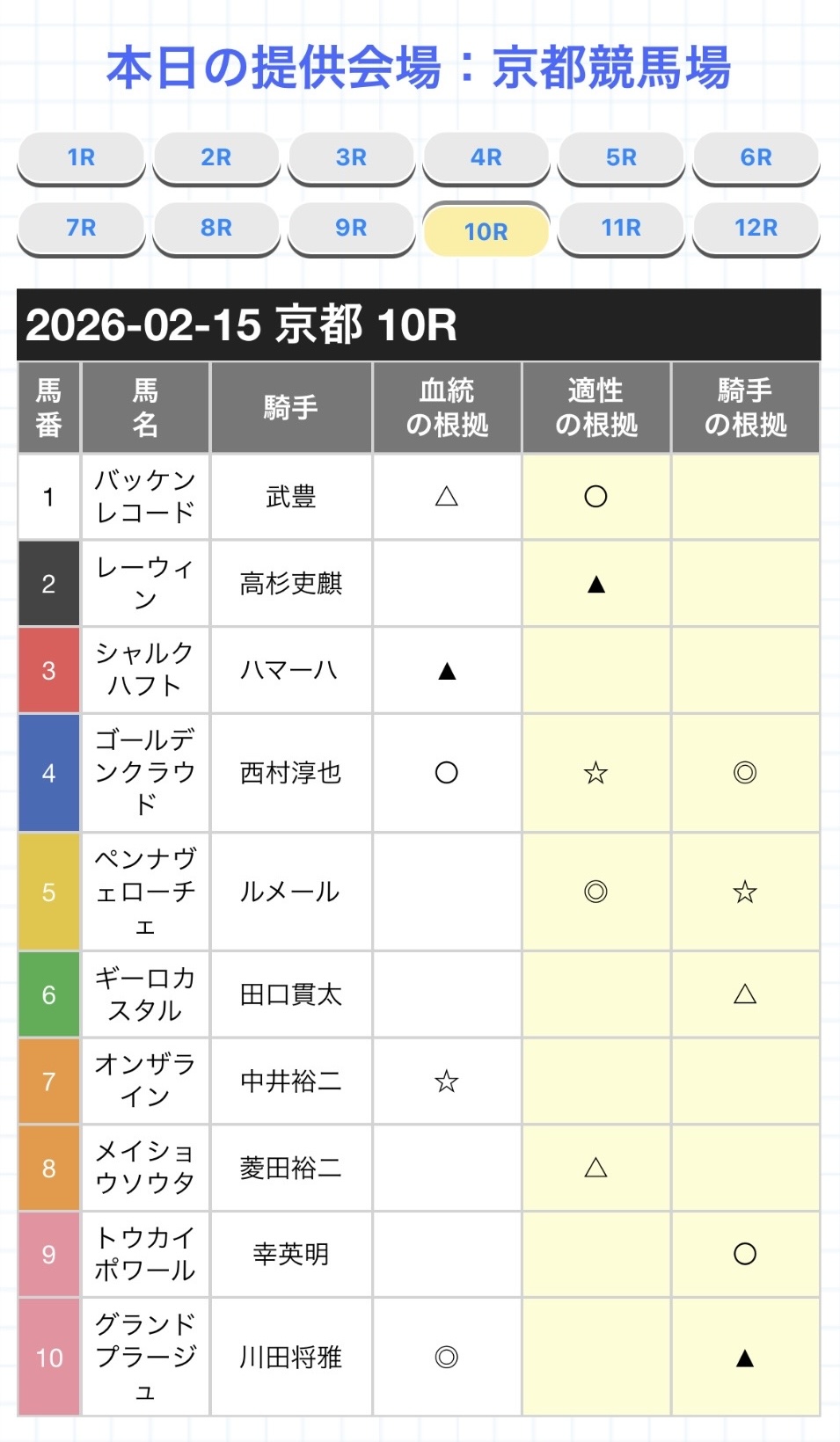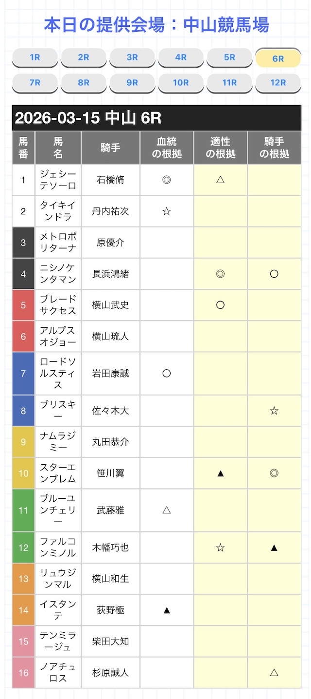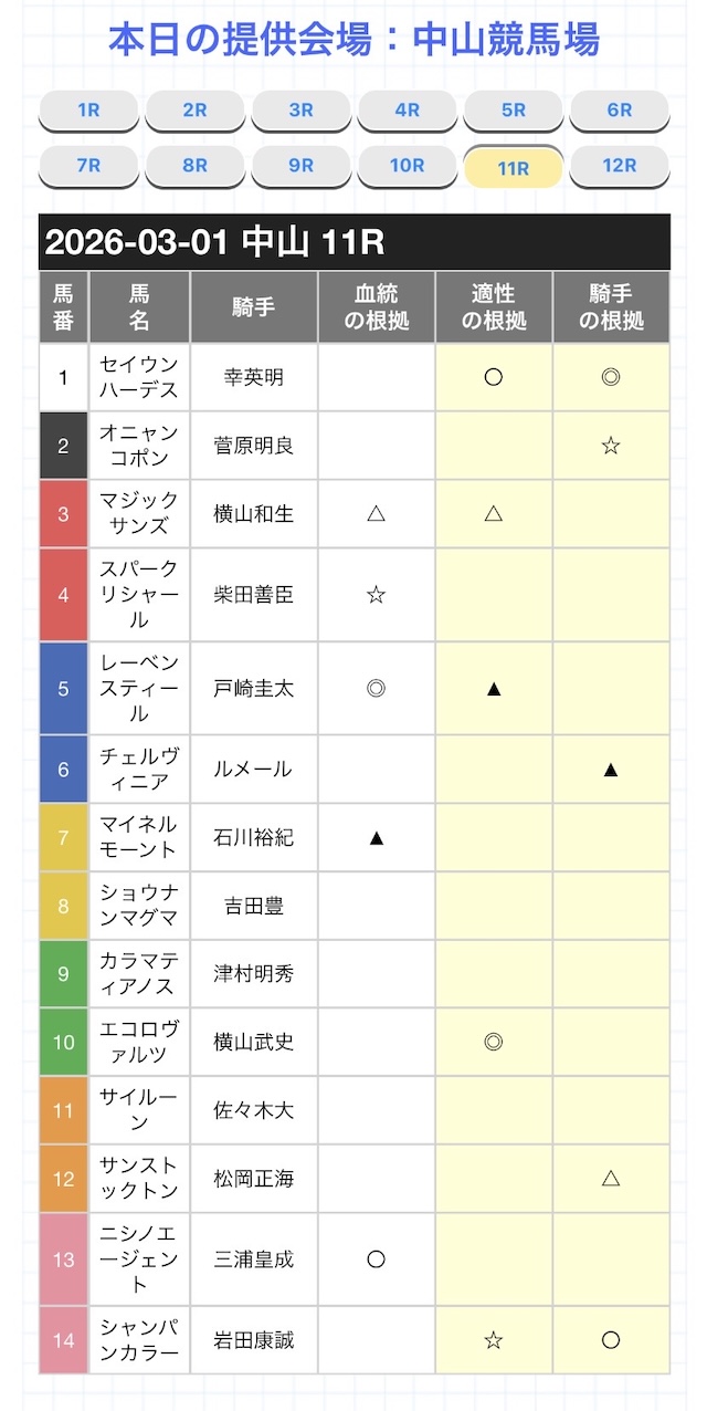 『血統』『適正』『騎手』の3点でみた時、期待値の高い馬が一目でわかるようになっています。