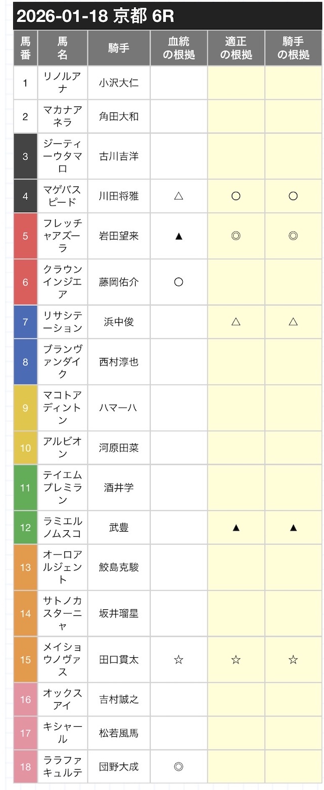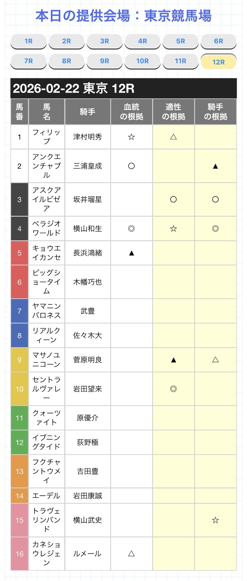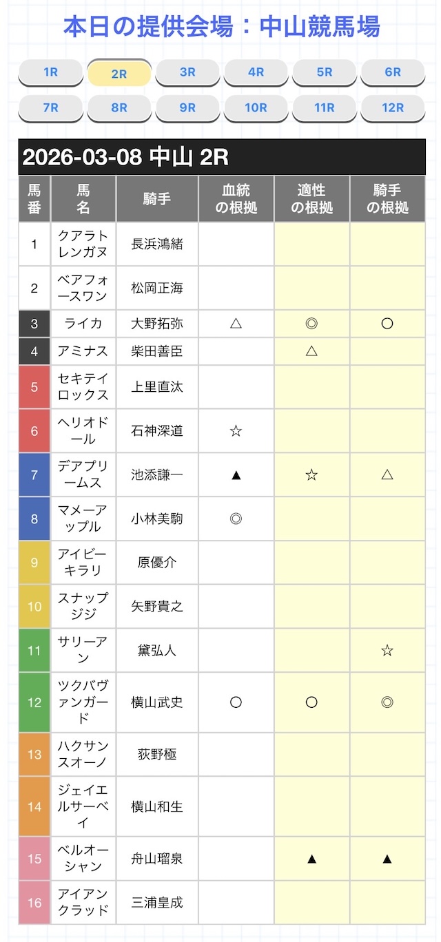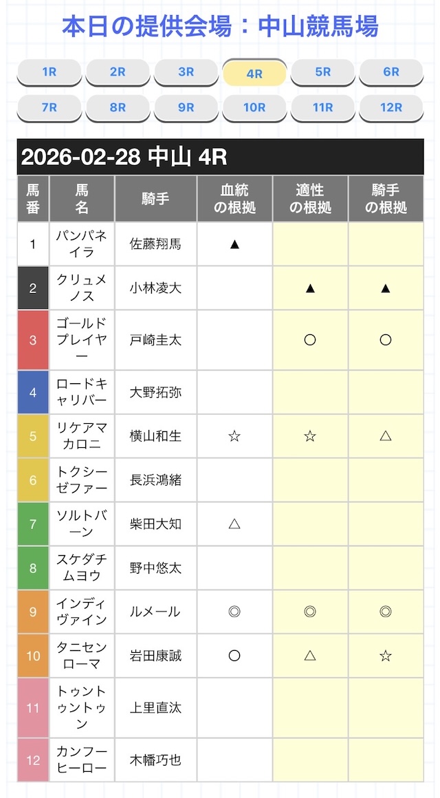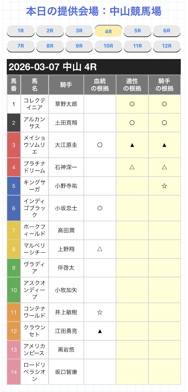 『血統』『適正』『騎手』の3点でみた時、期待値の高い馬が一目でわかるようになっています。