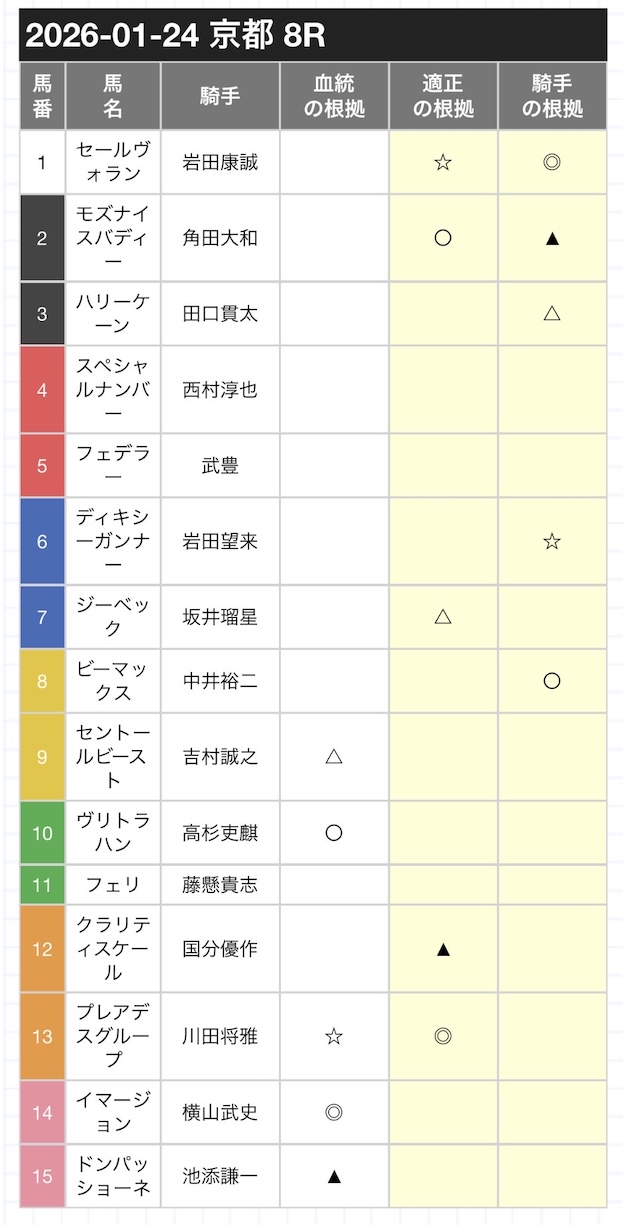 予想印の活用方法は人それぞれだと思うので、馬ラボは以下のルールを設定。