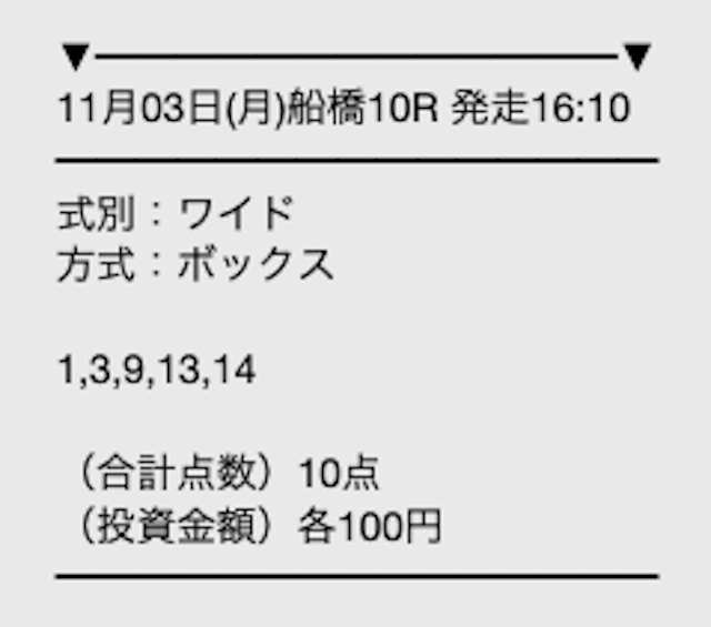 71戦58勝13敗 | 81% | 204% | ワイド | 10点 |