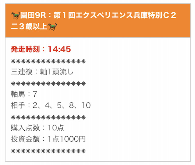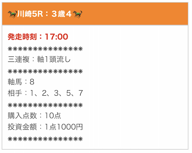 - 提供頻度:毎日(1日1〜2レース)
