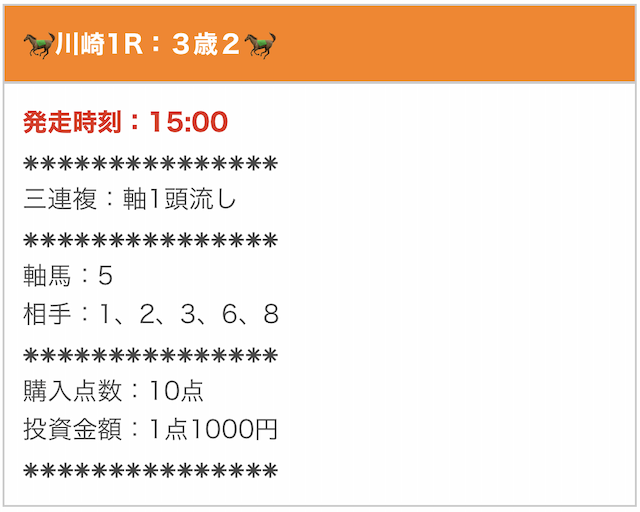 ★★★★★5.0 まりく 競馬歴:4〜5年 30代男性 まず、ケイバ一番星はきちんと的中するところが素晴らしいです!