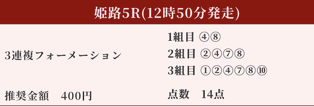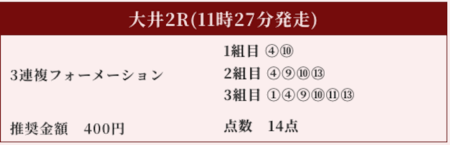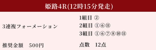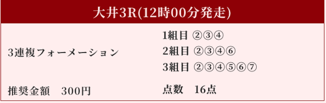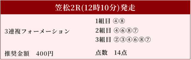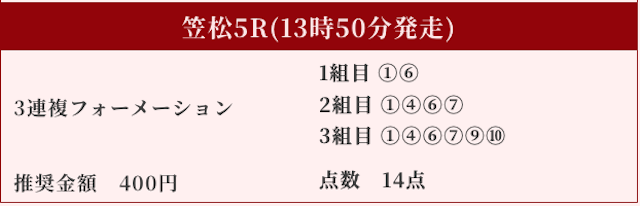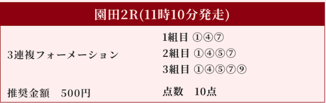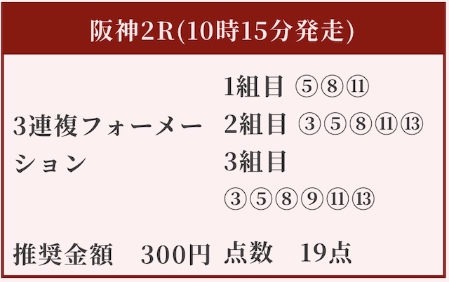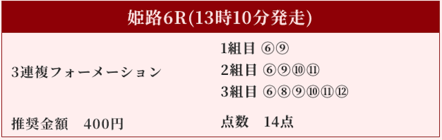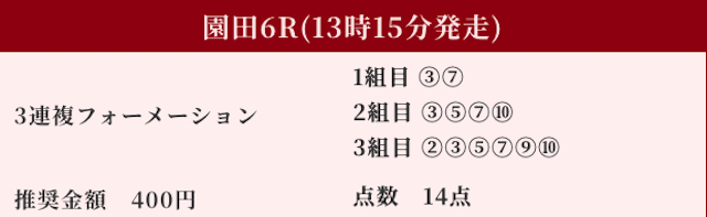 23戦6勝17敗 | 26% | 73% | ワイド | 3点(◎-◯▲△) |