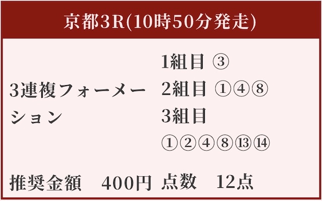 また、相手馬には人気馬を多く入れ、堅い決着になると踏んでいます。