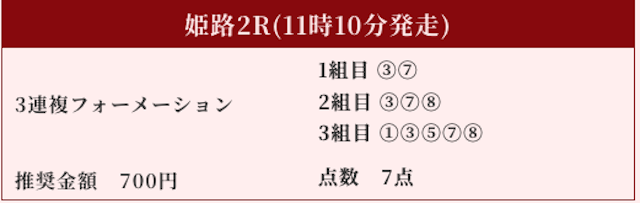 38戦9勝29敗 | 23% | 112% | 3連単 | 変動 |