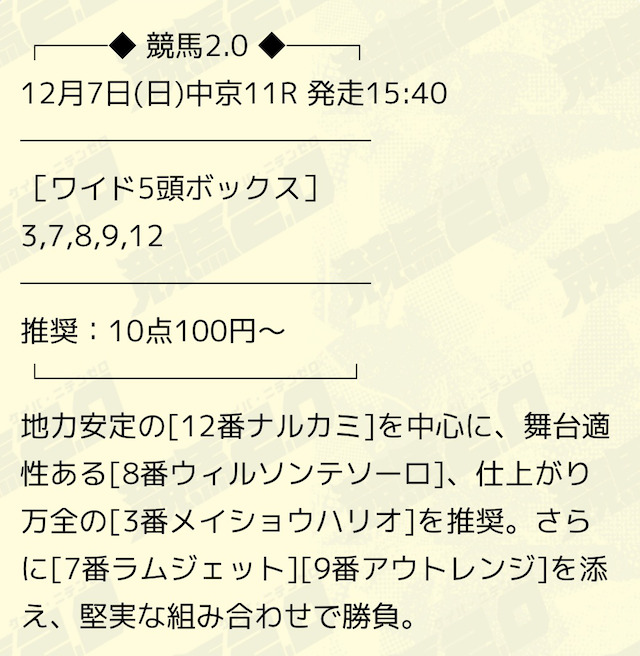 有料予想ではオッズ7000倍超えの高額馬券を獲得出来る可能性もあるので、ぜひ資金に余裕があれば購入をして欲しいです。