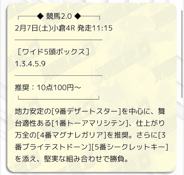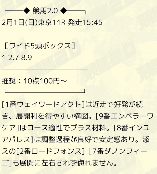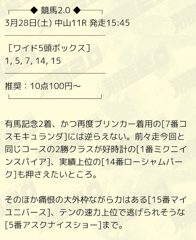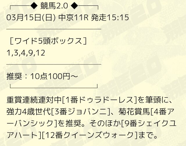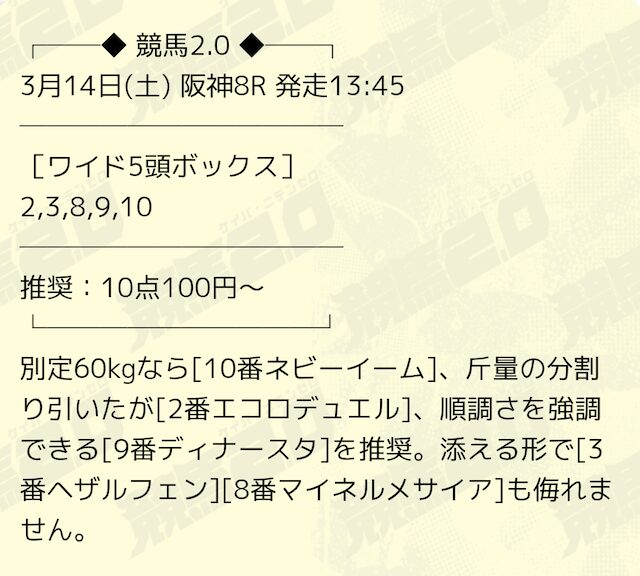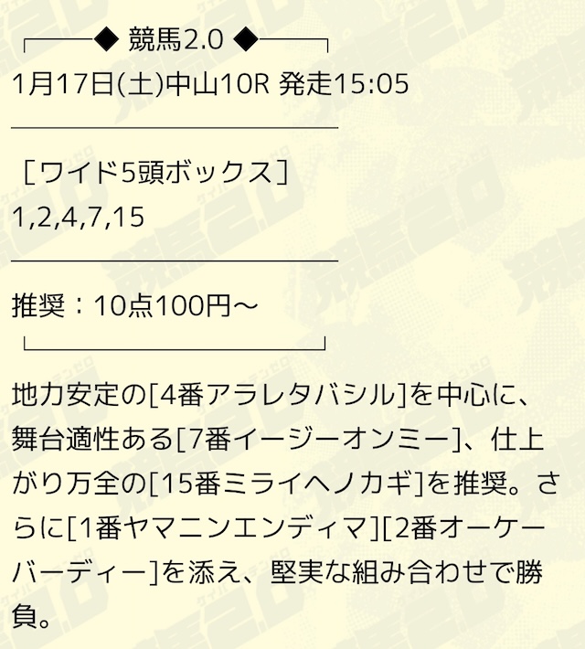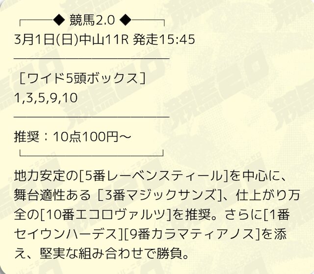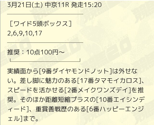 この予想にのるのは正直怖かったですが、プランを購入したからには勝負をしました。