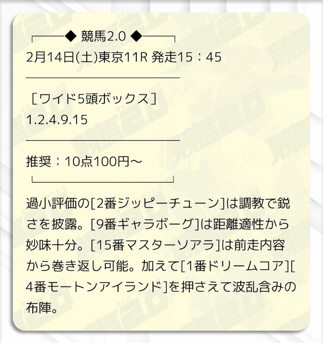 競馬2.0は、なんと軸に9・11番人気の穴馬を選びました。