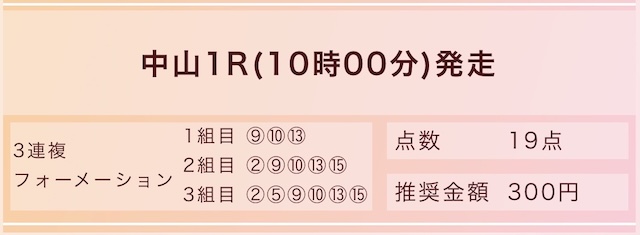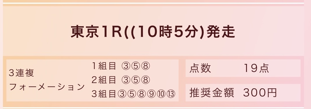 投資金額については1点300円となっていますが、初戦3戦は慎重に勝負したいので1点100円で購入して勝負していきます!