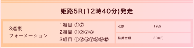 3連単:19点 210.9倍 |