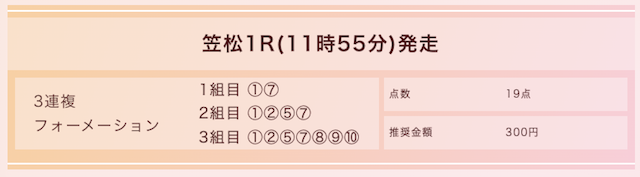 実際に公開された買い目がこちらです。