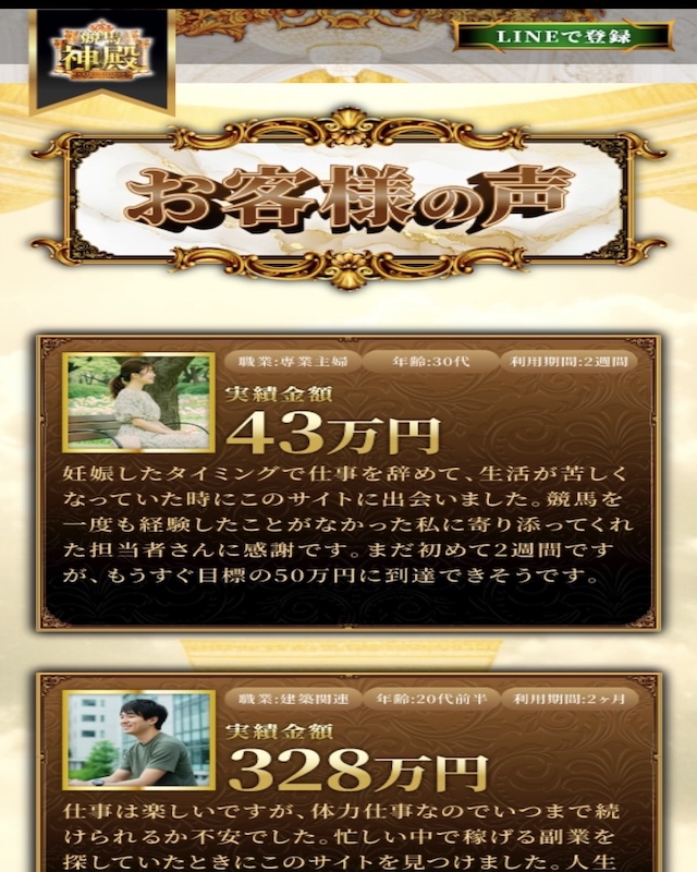 競馬神殿は実力がない悪徳サイトで間違いありません。