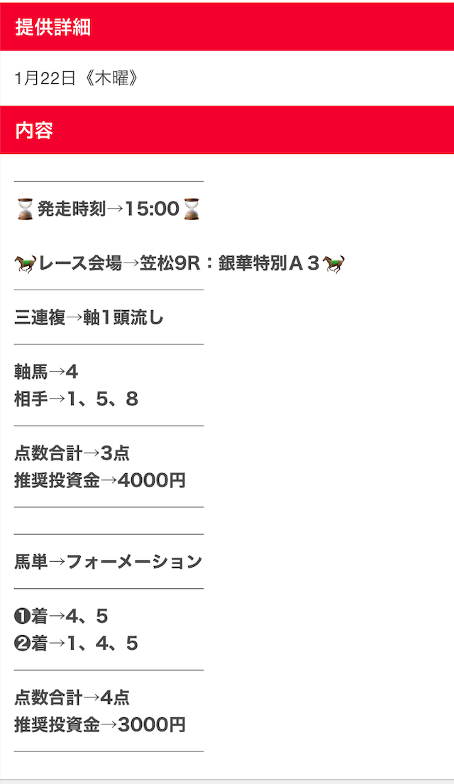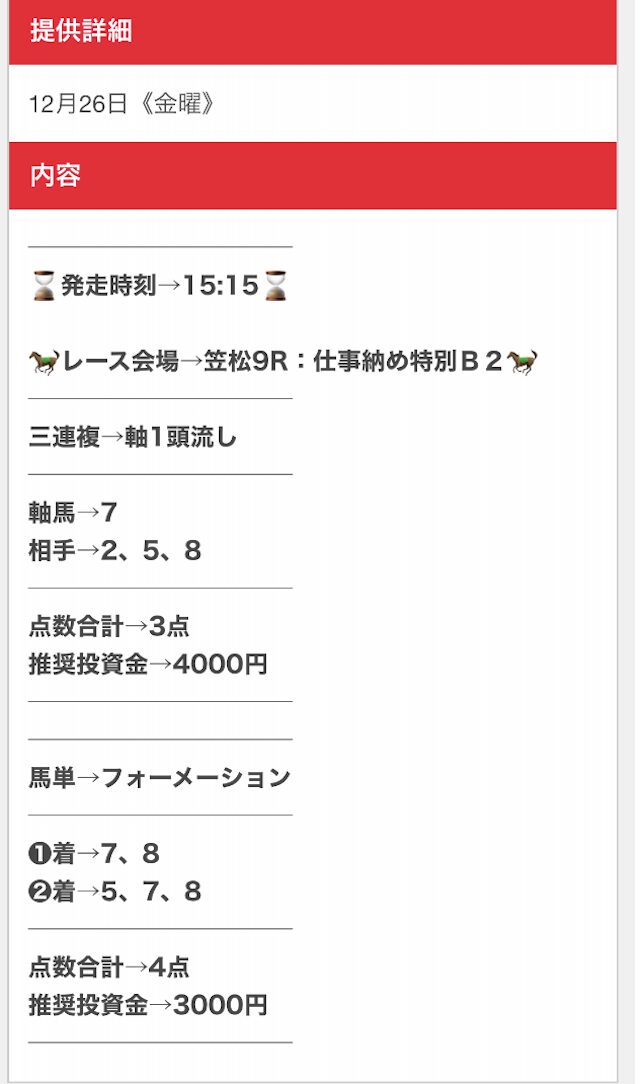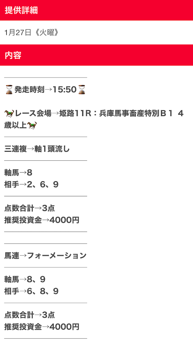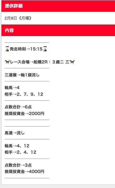 その結果、予想は見事に的中したので、2回プランを買い足しました。