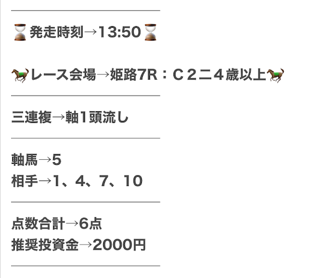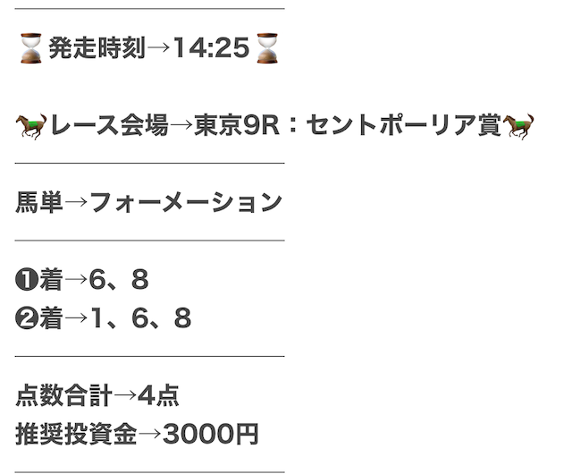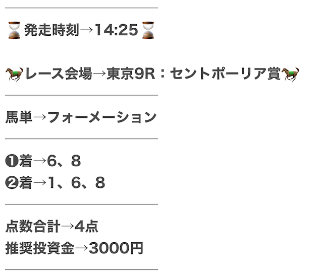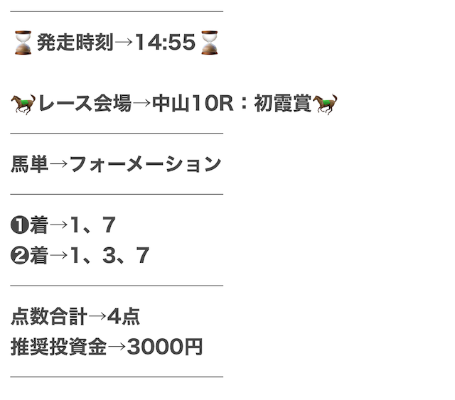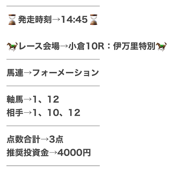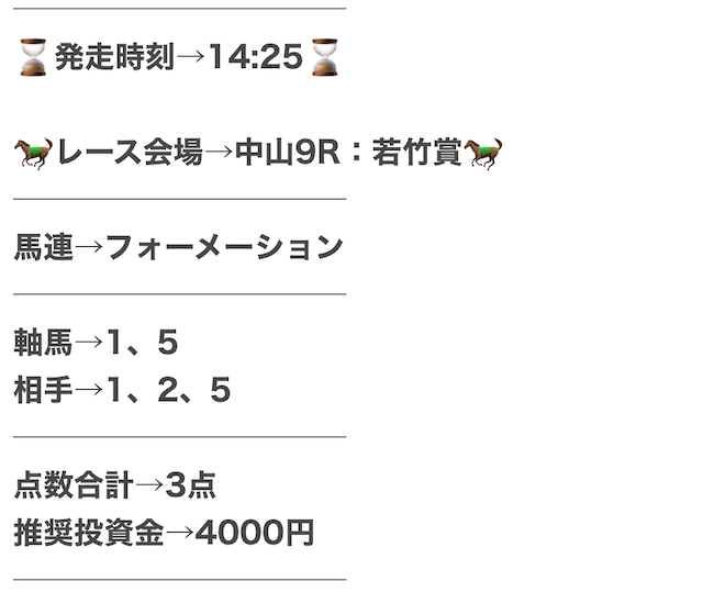 実際に公開された買い目がこちらです。