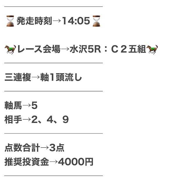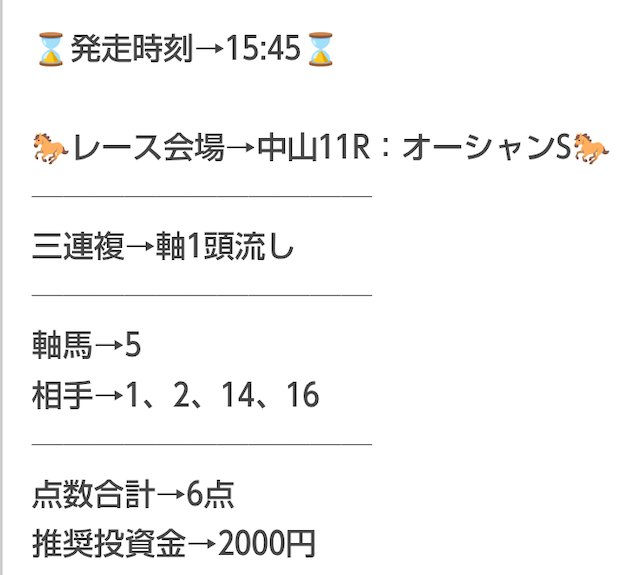 予想の公開時間はレース当日の10時ごろ。