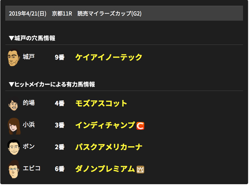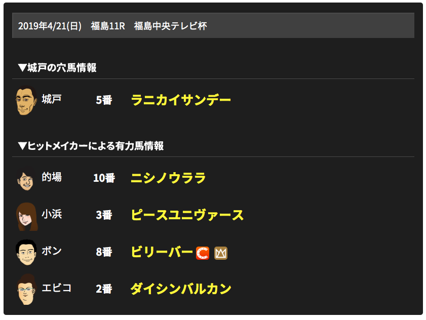 - ヒットメイク:的中率を最も大事にして予想を公開。