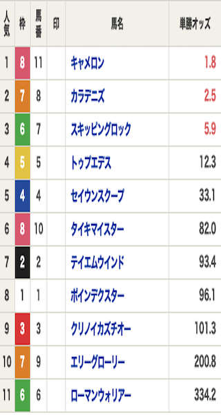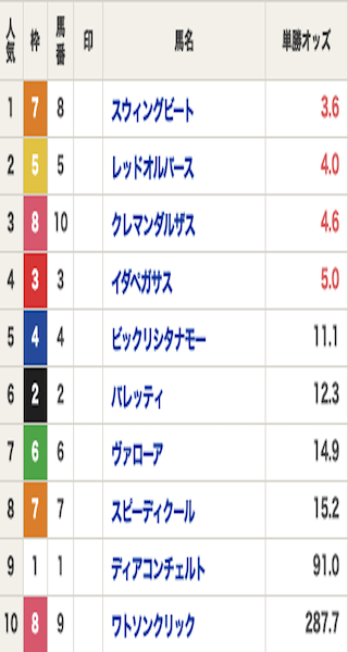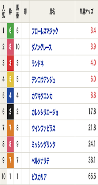 仮に1番人気で当たると、想定オッズは3.5倍でトリガミになります。
