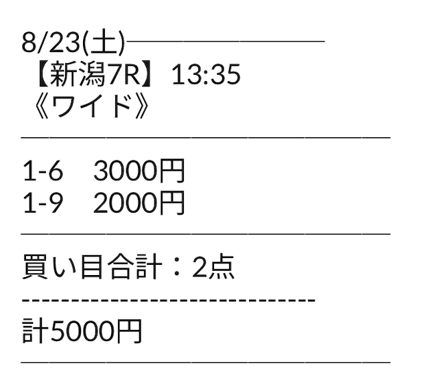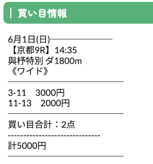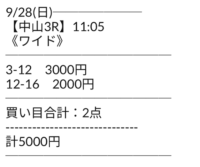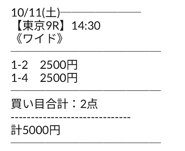 ★★☆☆☆2.0 りか 競馬歴:1ヶ月未満 30代男性 買い目の点数が少ないせいか、外れることも‥100%ちかくの的中率を狙うのは、流石にやりすぎなのかな。とりあえず、全勝を目標に頑張るわ。