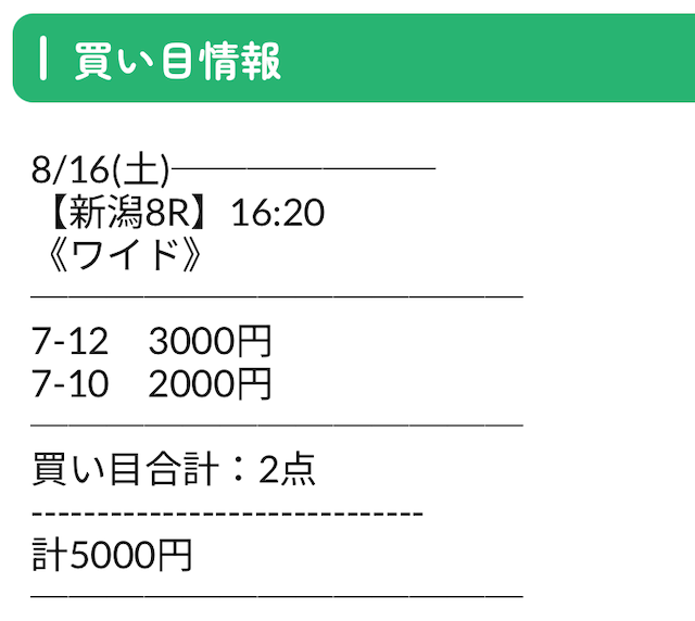 ★☆☆☆☆1.0 かさ 競馬歴:1ヶ月未満 30代男性 2戦したけど、どちらもトリガミ。買い目が多すぎて回収率が全然ダメ‥的中はしてるけど、これじゃ意味がないですよね。精度を上げてくれないと、正直もう使わないかも。