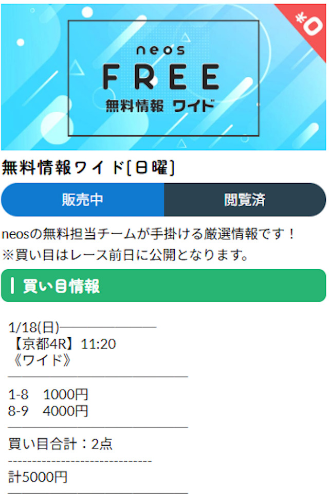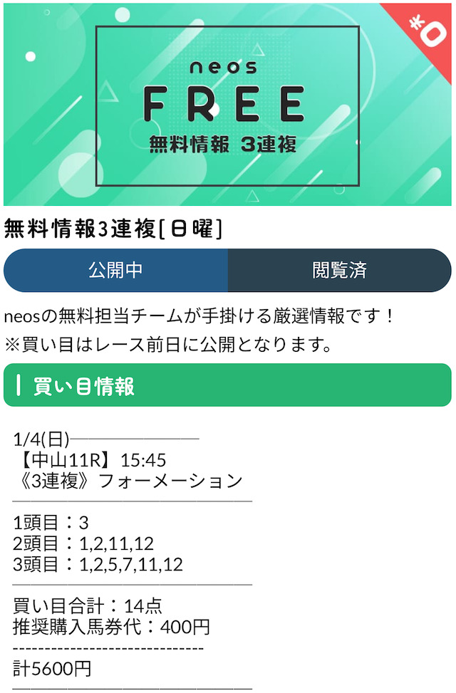 ネオスが提供している無料予想についてまとめました。