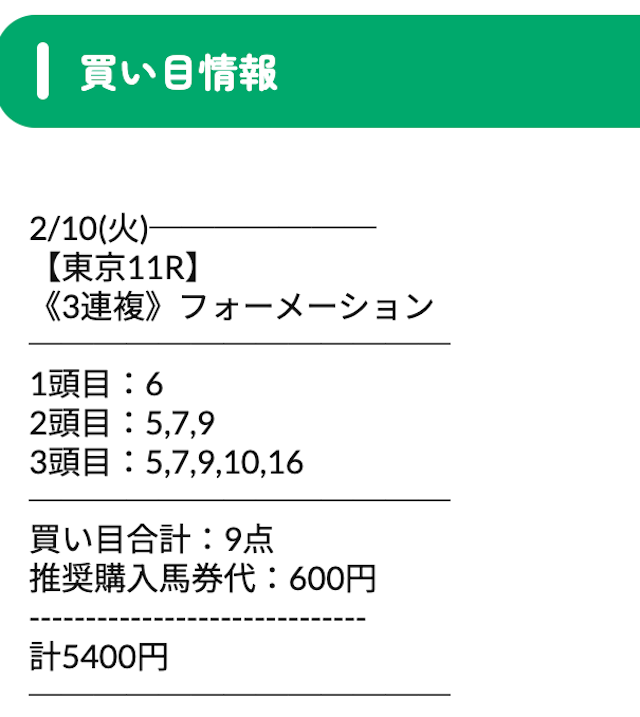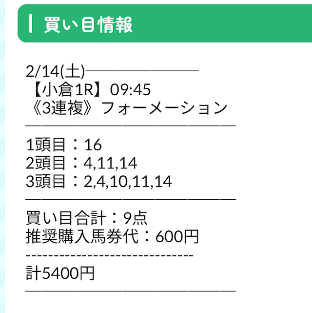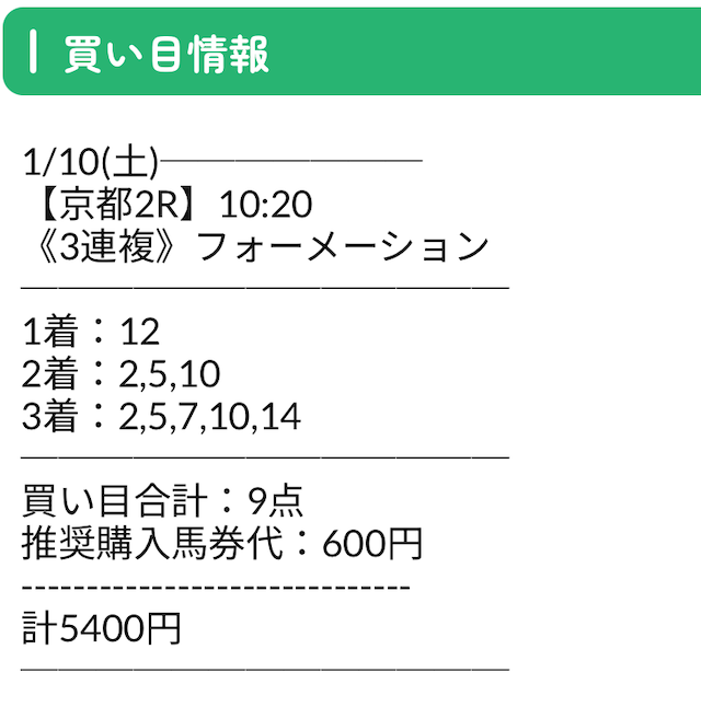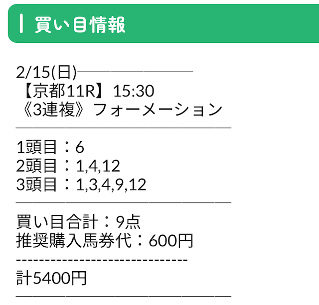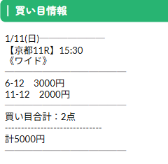 公開された買い目がこちら