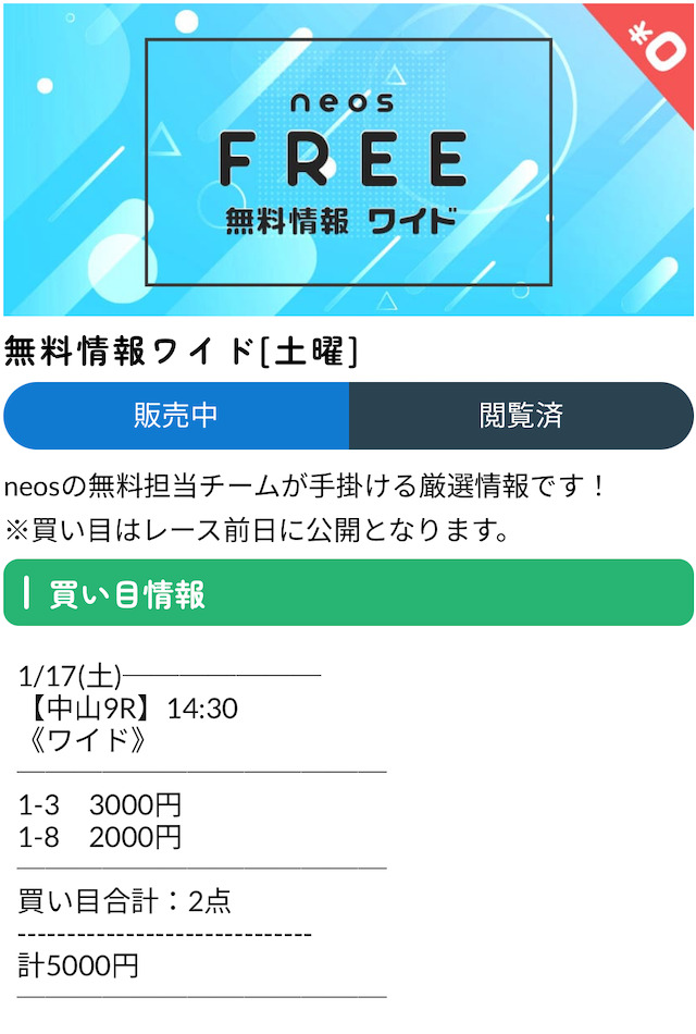 ネオスの無料予想で勝負!【1回目】