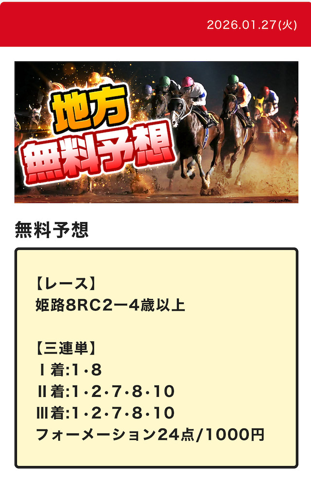 有料予想は無料予想が1、2回当たれば購入できるので、まずは軍資金作りから始めましょう!