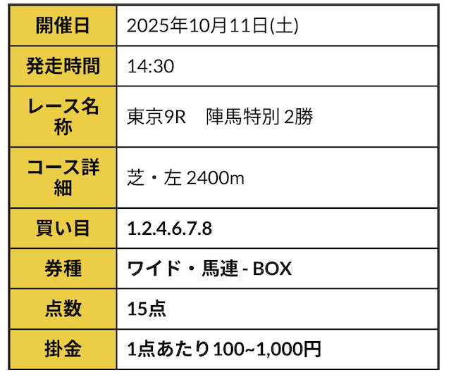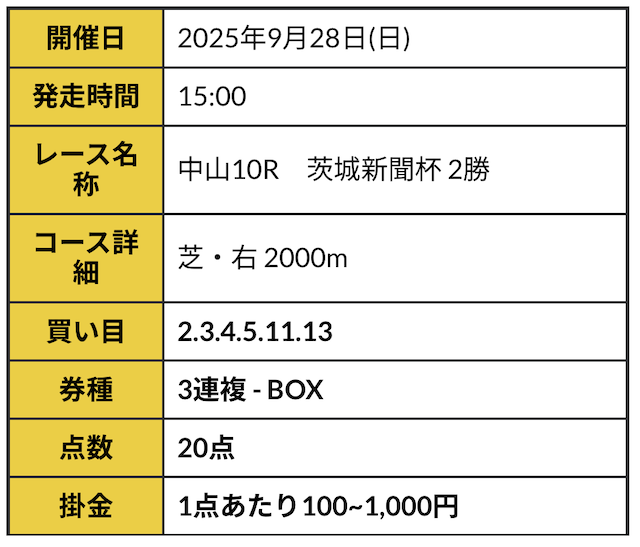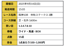 点数については、ワイド・馬連が15点で3連複が20点となっています。
