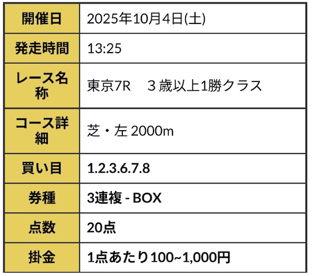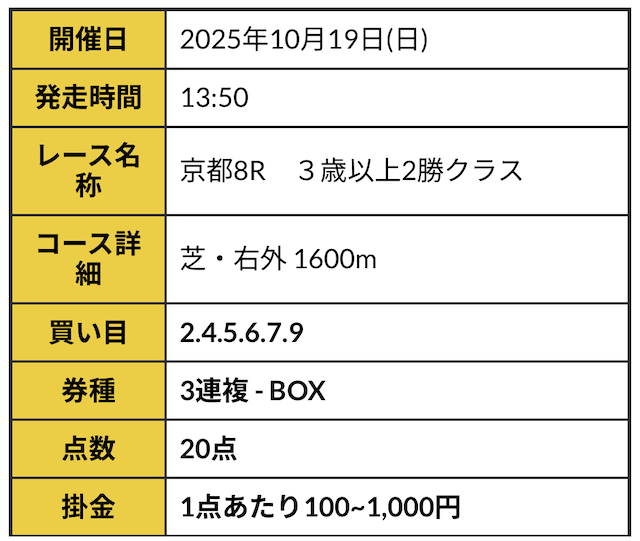 次に、馬ラボは勝負するからにはまとまった払戻が欲しいため、1点1,000円で購入して勝負!