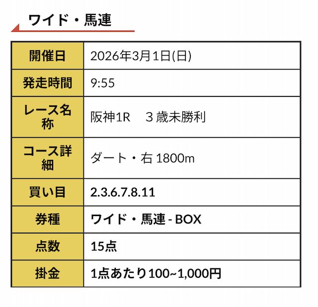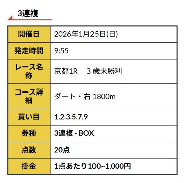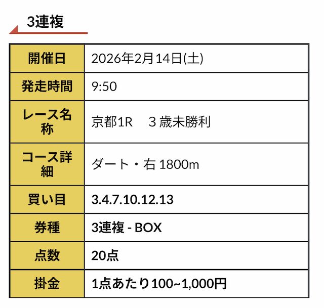 実際に公開された買い目がこちらです。