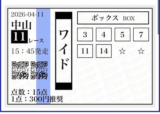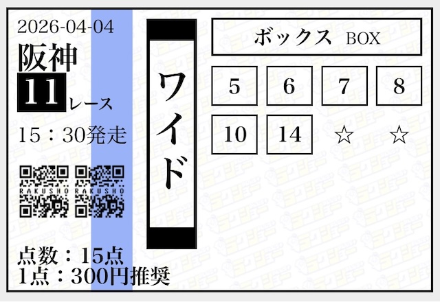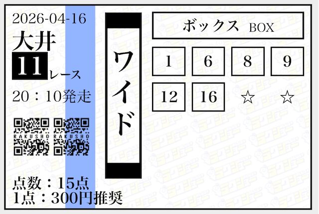 実際に公開された買い目がこちらです。