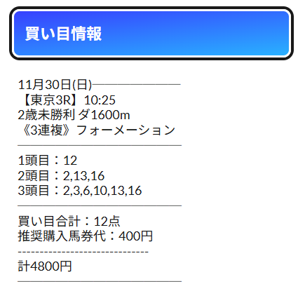 ★★★★★5.0 あいーん 競馬歴:4〜5年 30代男性 初っ端から万馬券が出ました。