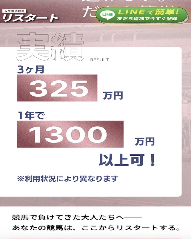 そんなリスタートの予想に乗ると稼げるのか、馬ラボが実際に利用して明らかにしていきます。